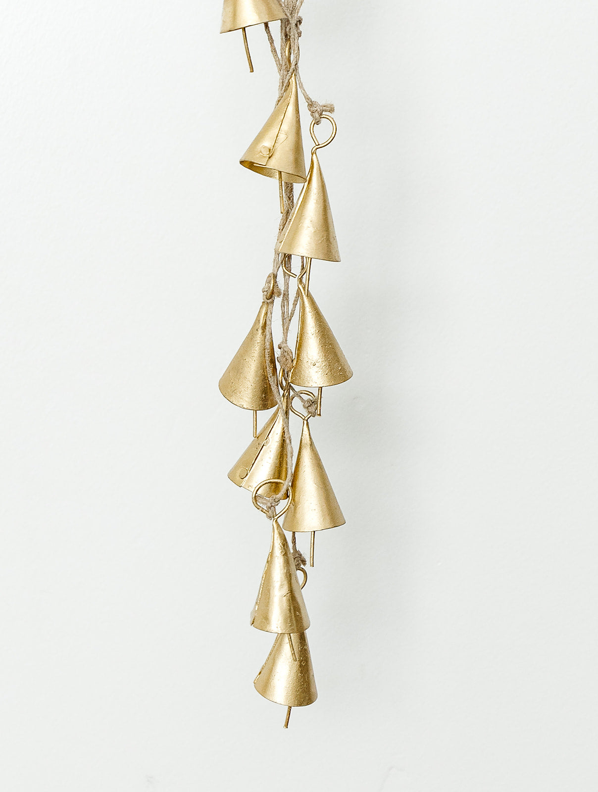 Elevate your home decor with our Antique Brass Hanging Bell Cluster 12.5". This stunning piece adds a touch of vintage charm to any space.
