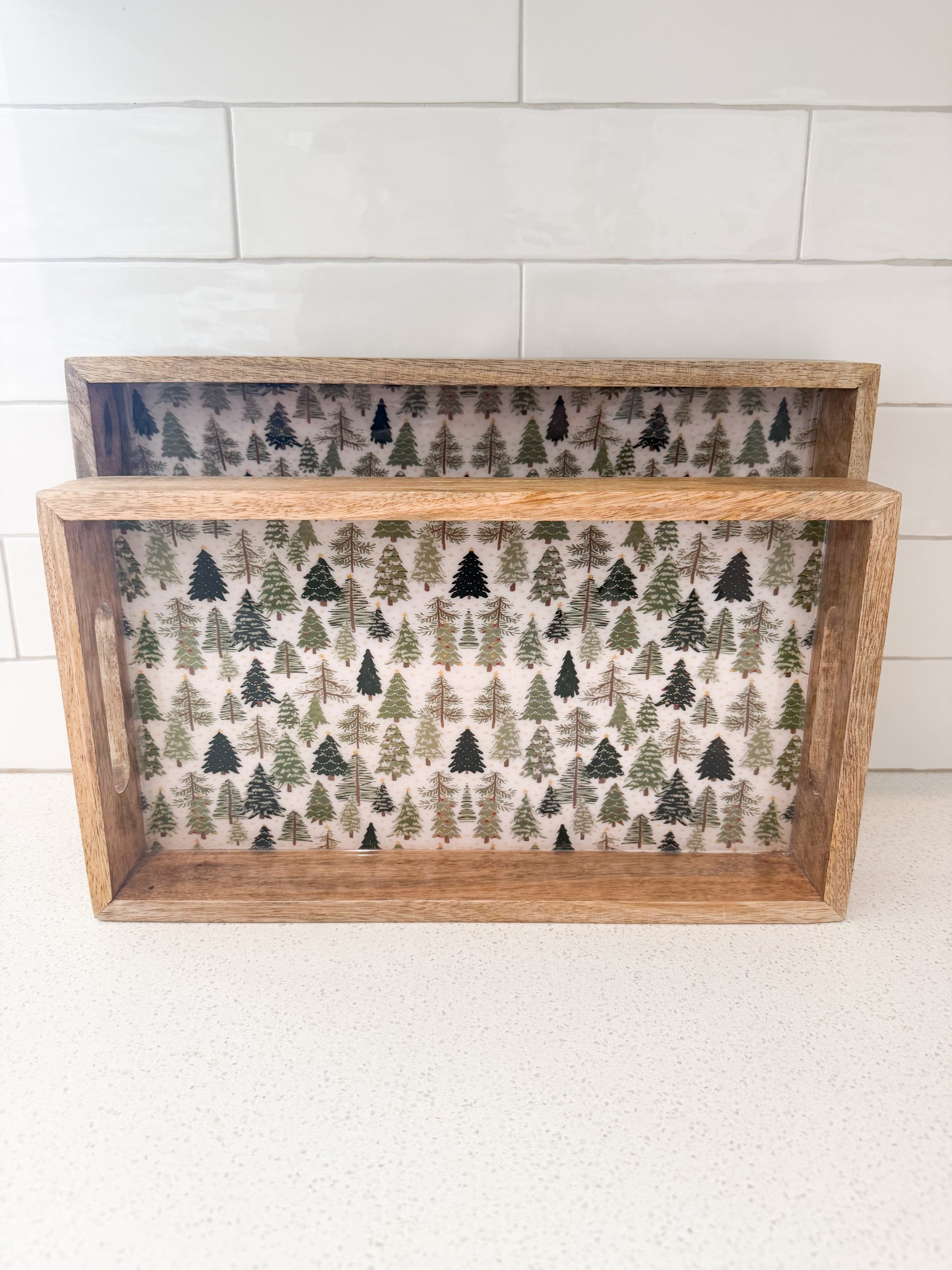 Christmas Trees Enameled Wood Tray - 2 Sizes