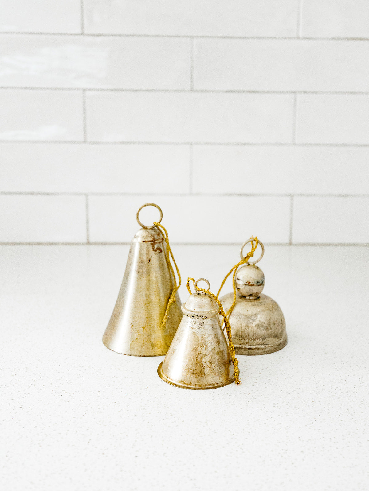 Distressed set of 3 Pewter Bells