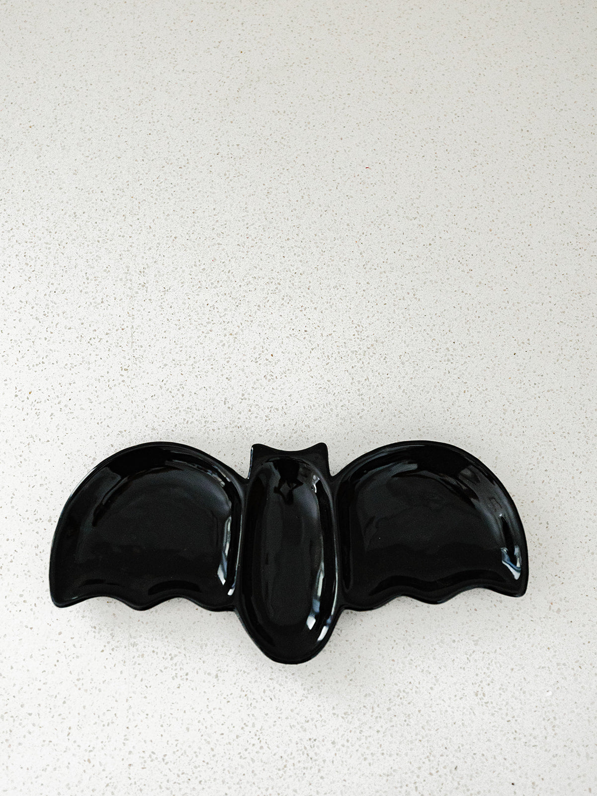 Elevate Halloween decor with the Flying Bat Dish. Perfect for festive gatherings, it adds a whimsical, spooky touch to any setting.
