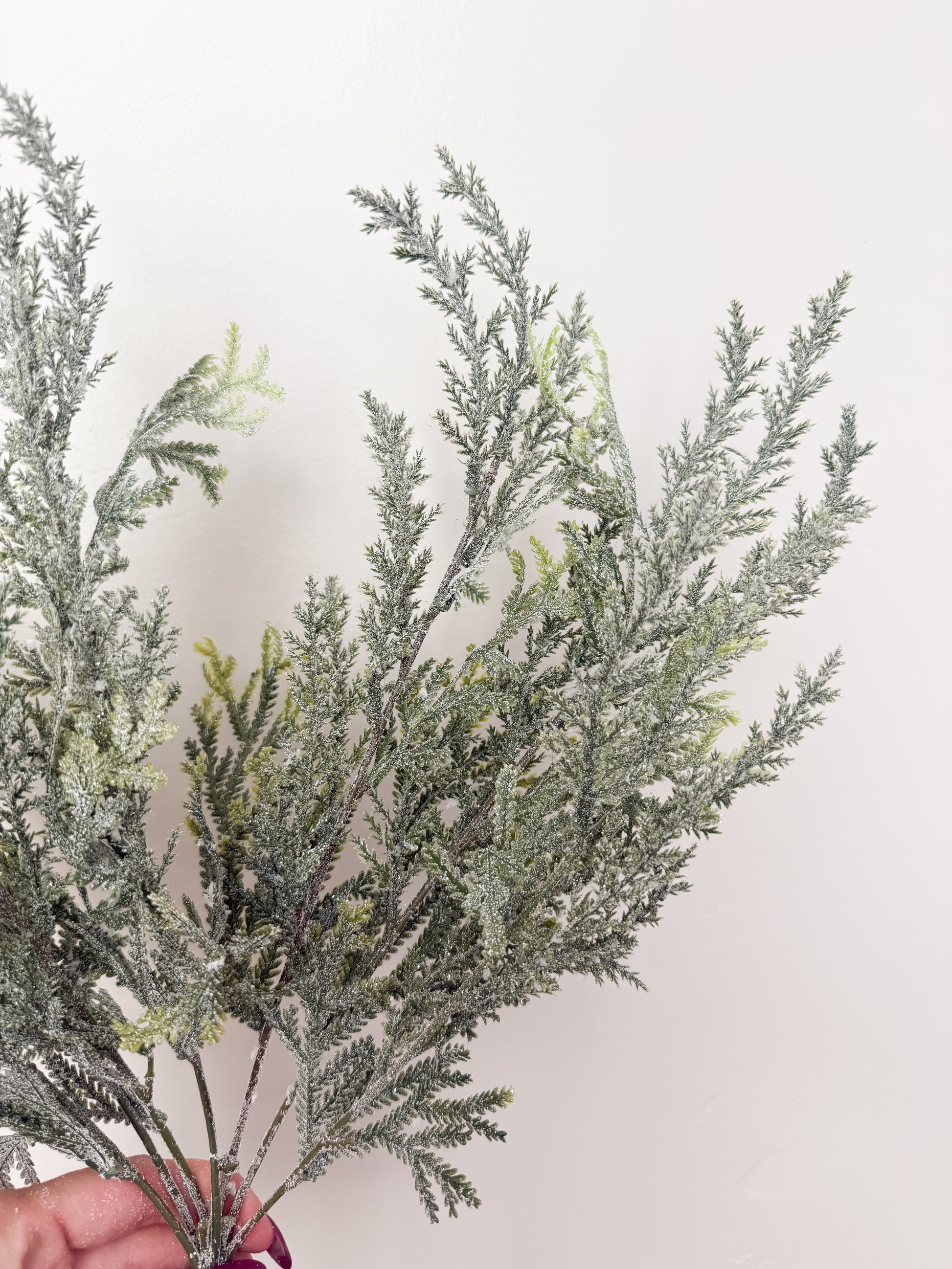 Transform your home with the Frosted Cedar Bush 17.5". This beautiful seasonal decor piece adds a touch of elegance and warmth to any room.