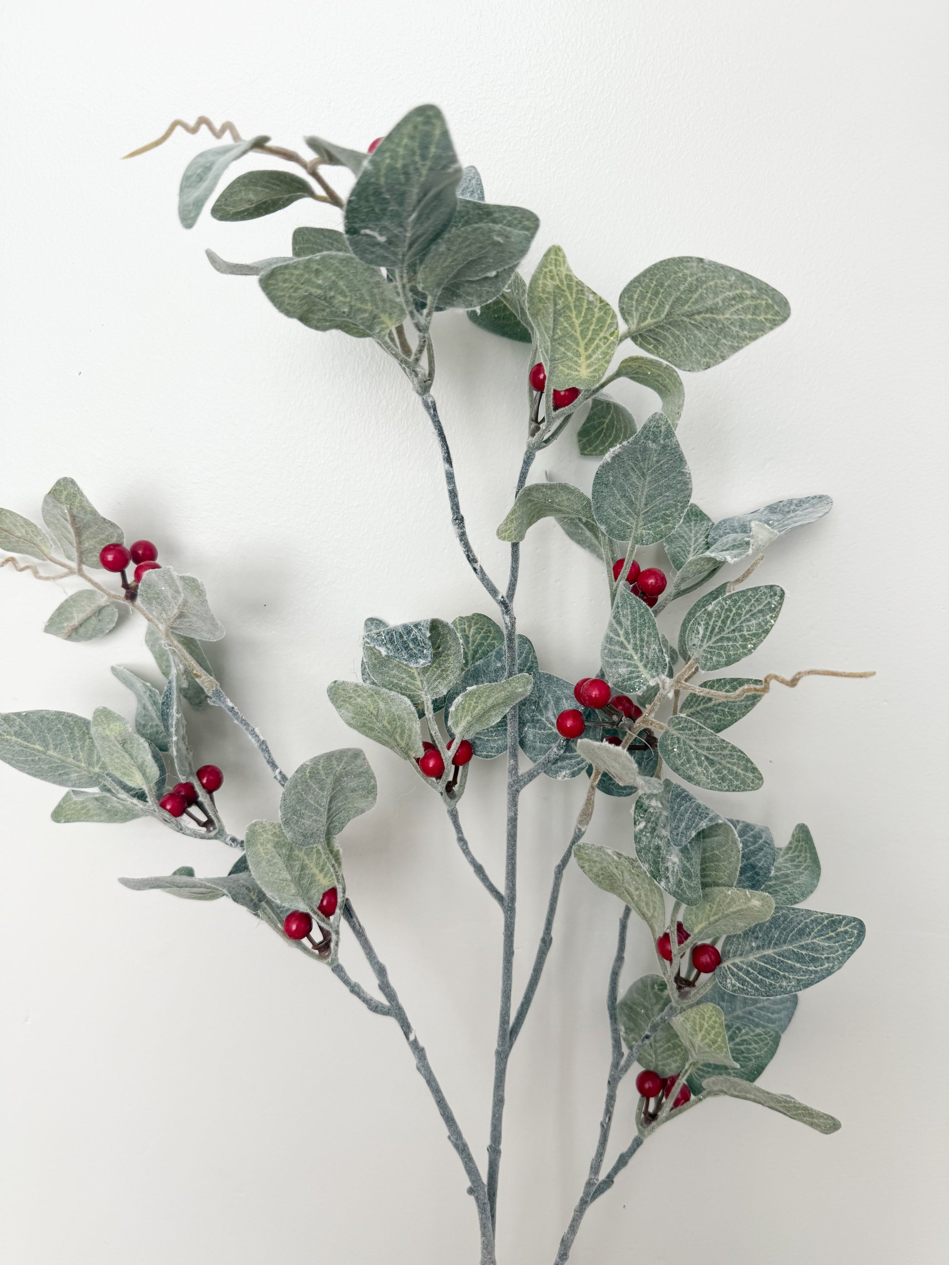Glittered and Flocked Fittonia Stem w/ Red Berries - 36"