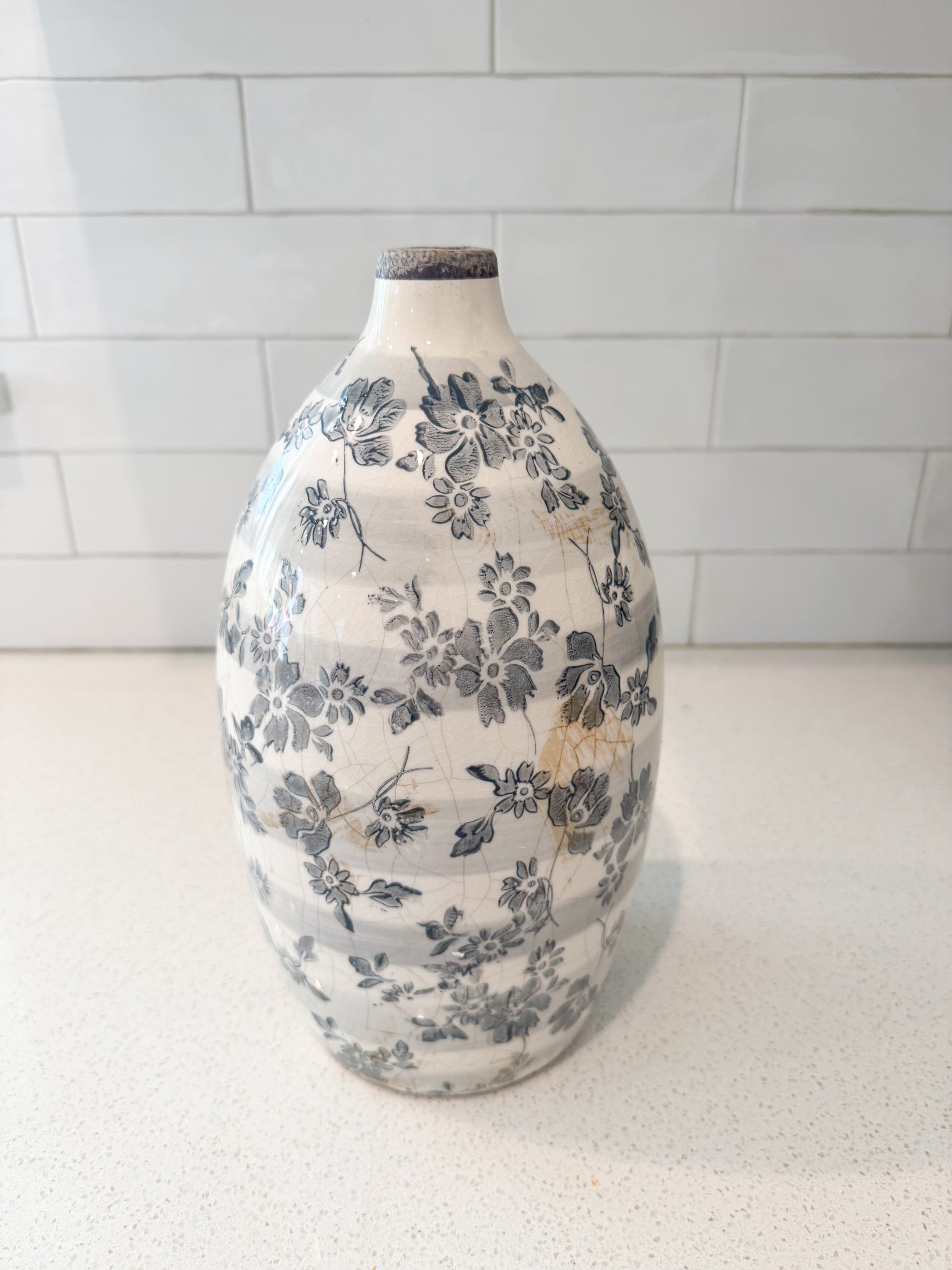 Gray Floral Crackled Vase - 3 Styles