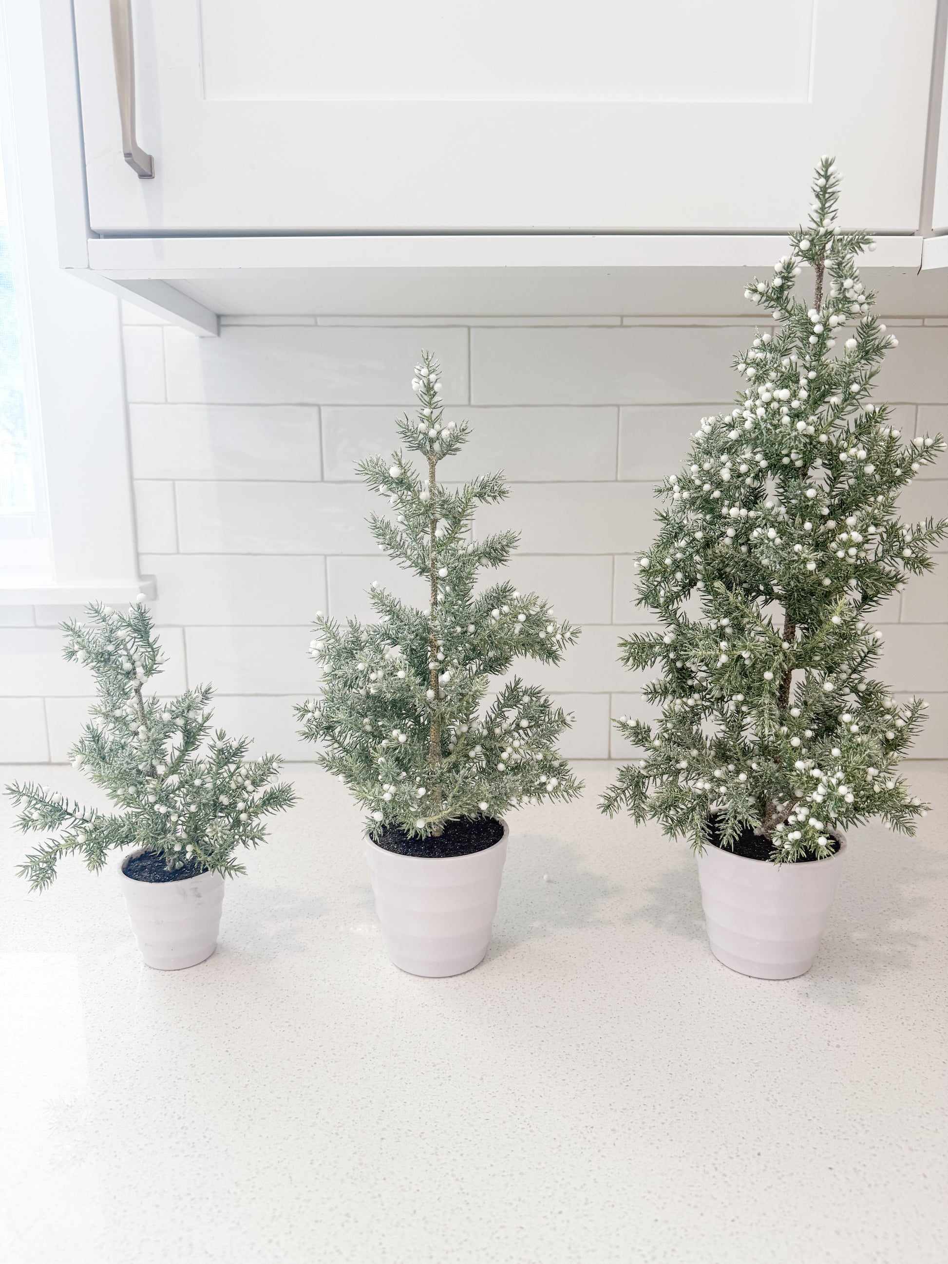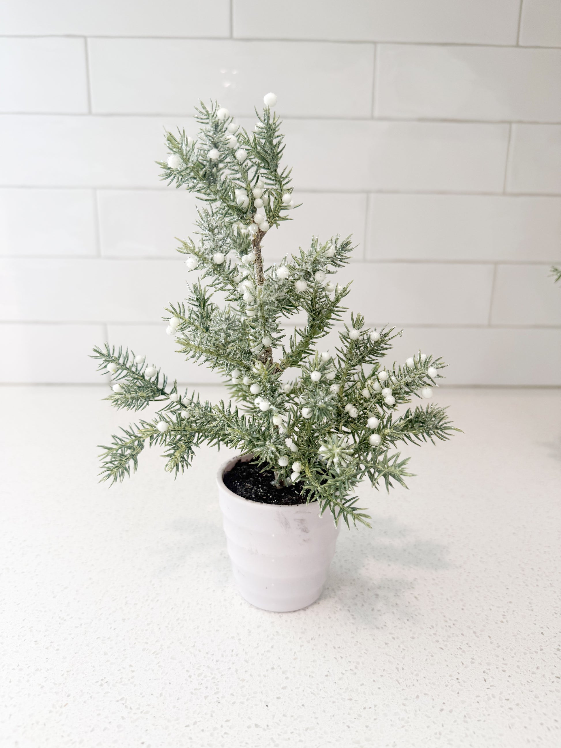 Juniper Tree with White Berries in White Ribbed Pot - 3 Sizes