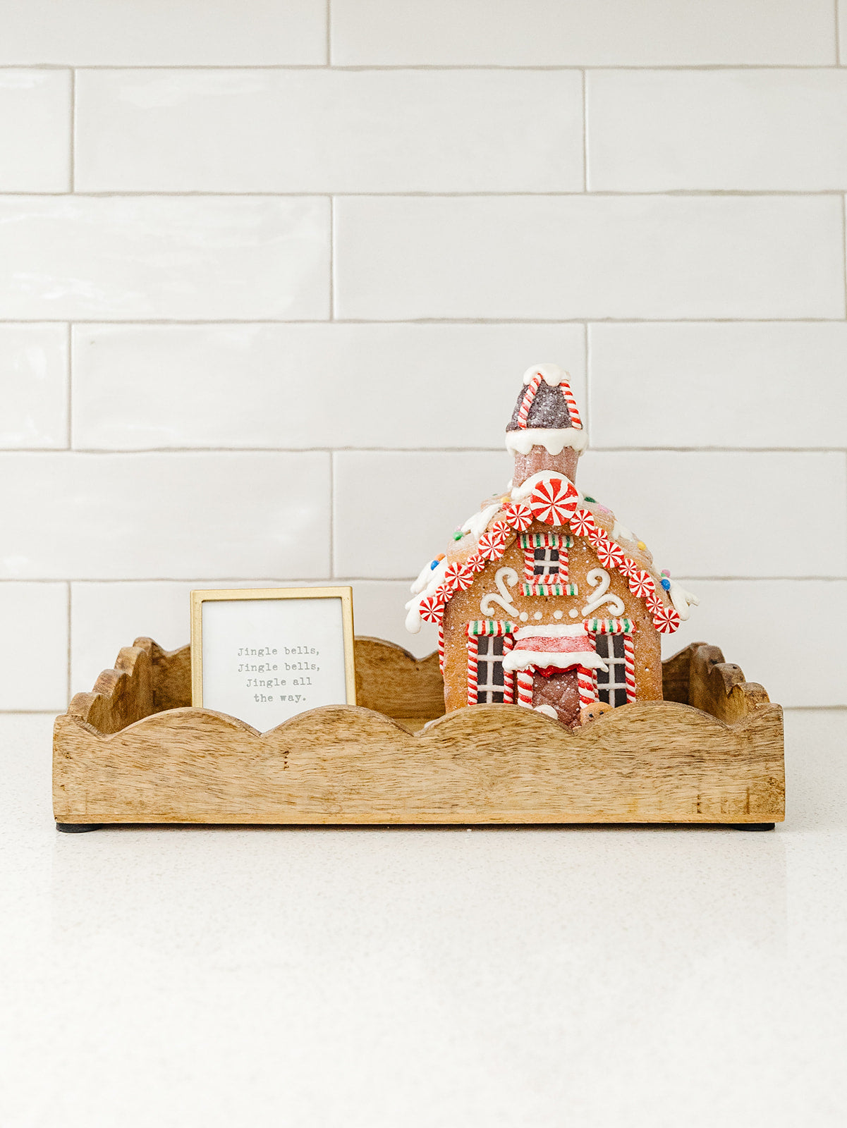 Elevate your home decor with the Mango Wood Scalloped Tray. This beautifully crafted tray combines functionality with style, making it a perfect addition to any seasonal decor.