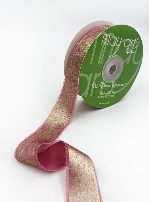Choose the Metallic Rose Gold Ribbon w/ Frayed Edge to add a subtle, sophisticated flair that enhances the tactile quality of your crafts with a modern twist on a classic metallic finish.