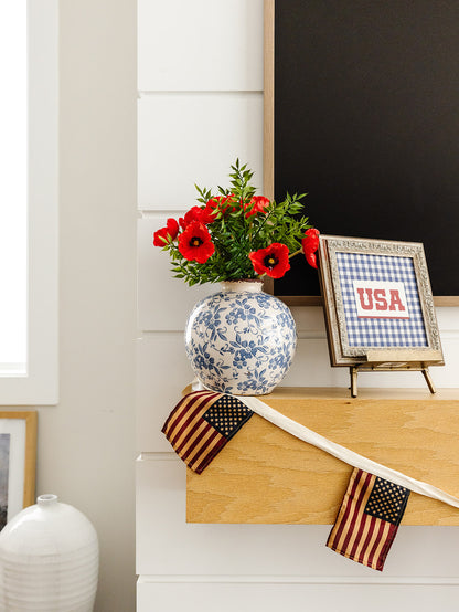 Enhance your home decor with our American Flag Garland. Perfect for patriotic celebrations, this garland adds a festive touch to any space.