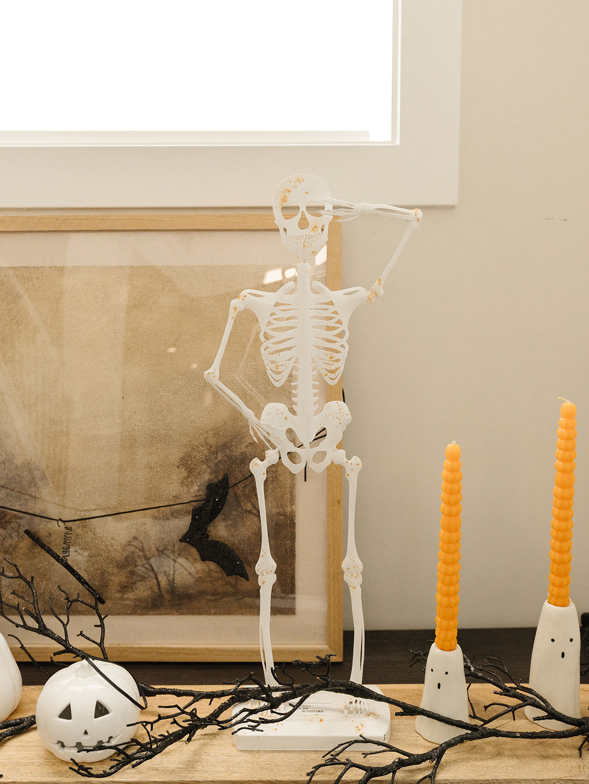 Elevate your decor with the Rustic White Metal Skeleton, a vintage-inspired piece that adds unique, seasonal charm to any space.