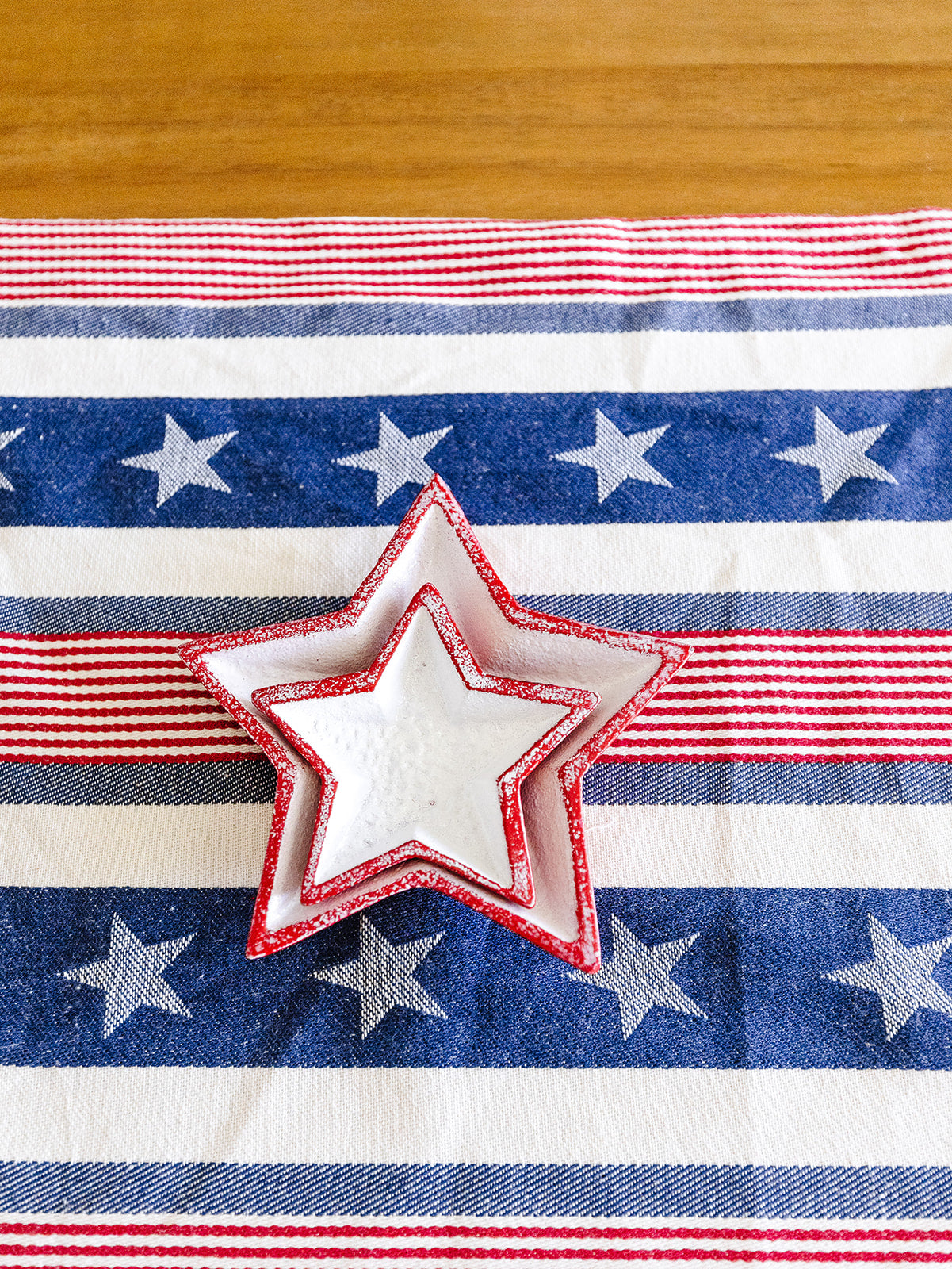 Bring a touch of patriotism to your dining experience with our Stars and Stripes Table Runner. Measuring at a generous 72 inches, this vibrant runner is perfect for celebrating holidays and gatherings.
