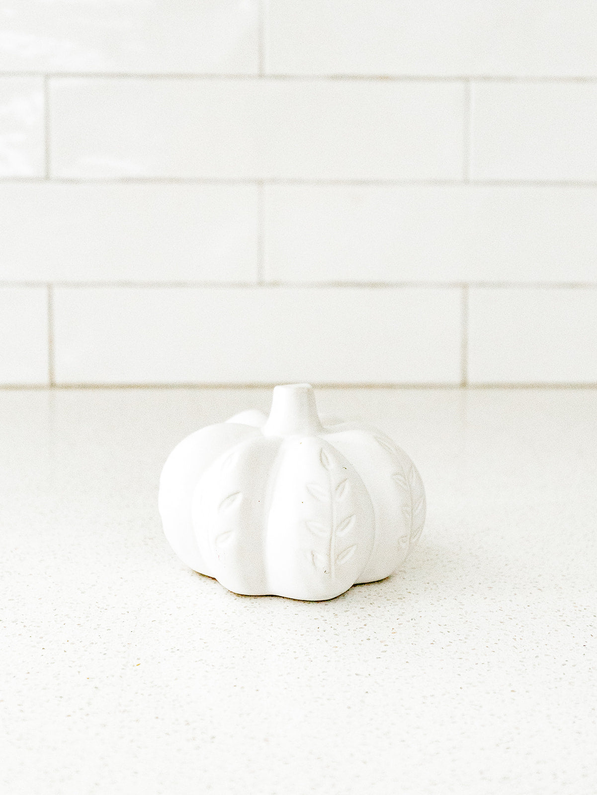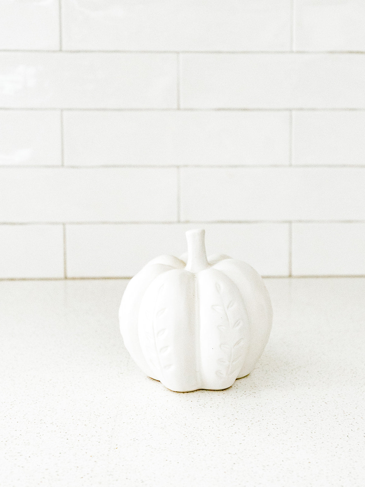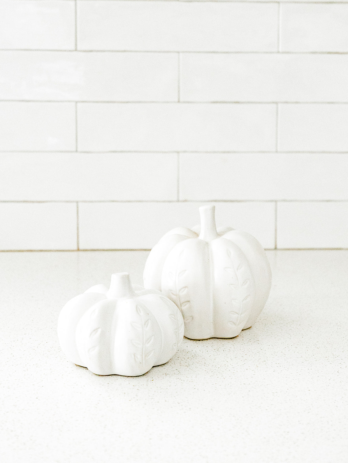 Elegant white ceramic pumpkins in two sizes add stylish, durable charm to your fall decor. Perfect for seasonal elegance and timeless appeal.
