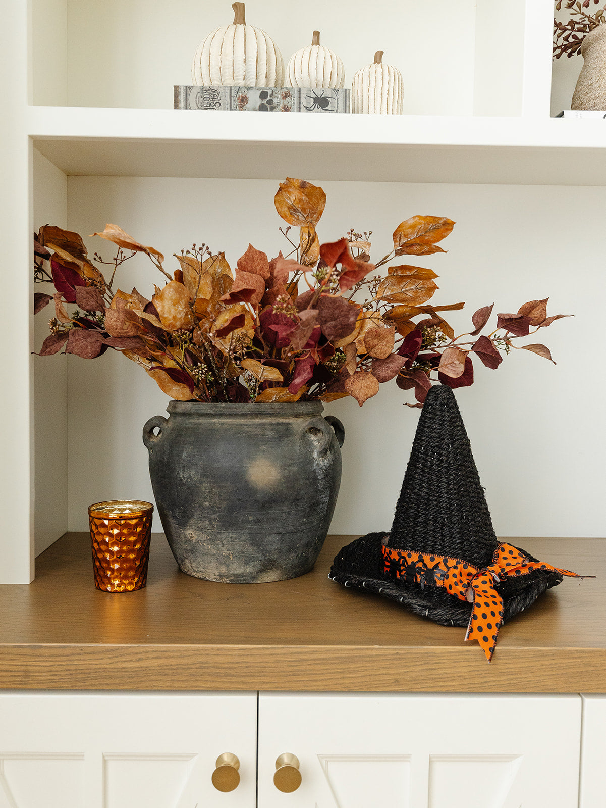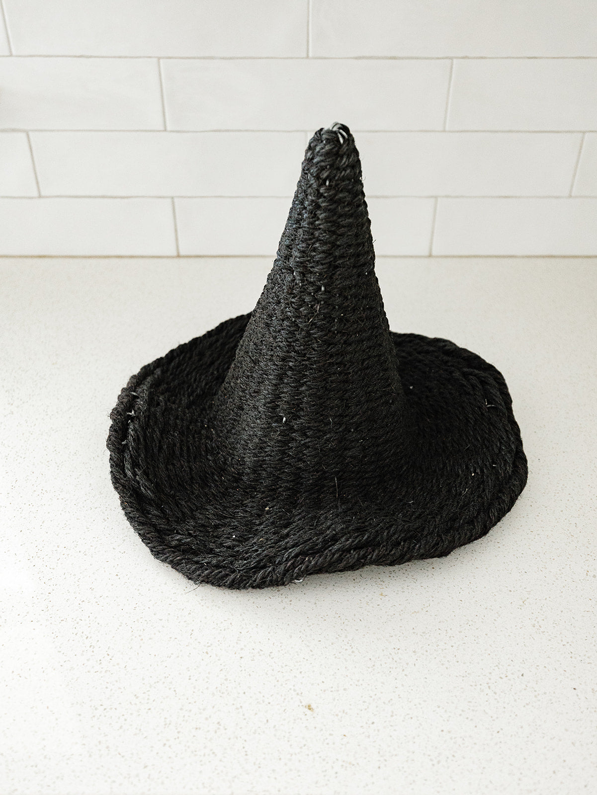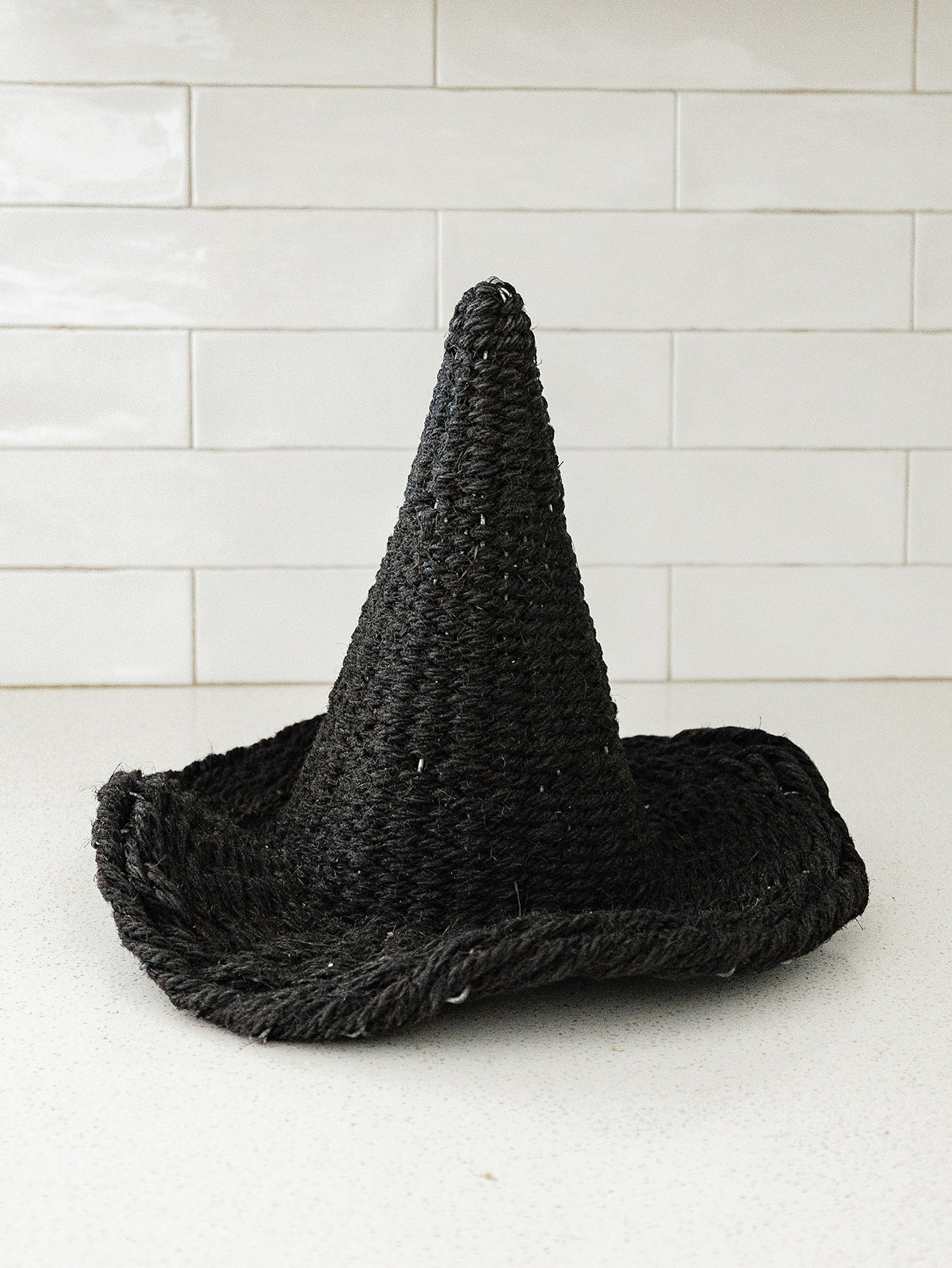 Elevate your Halloween decor with this charming Wicker Witch Hat. Perfect for adding a whimsical touch to any festive setting.