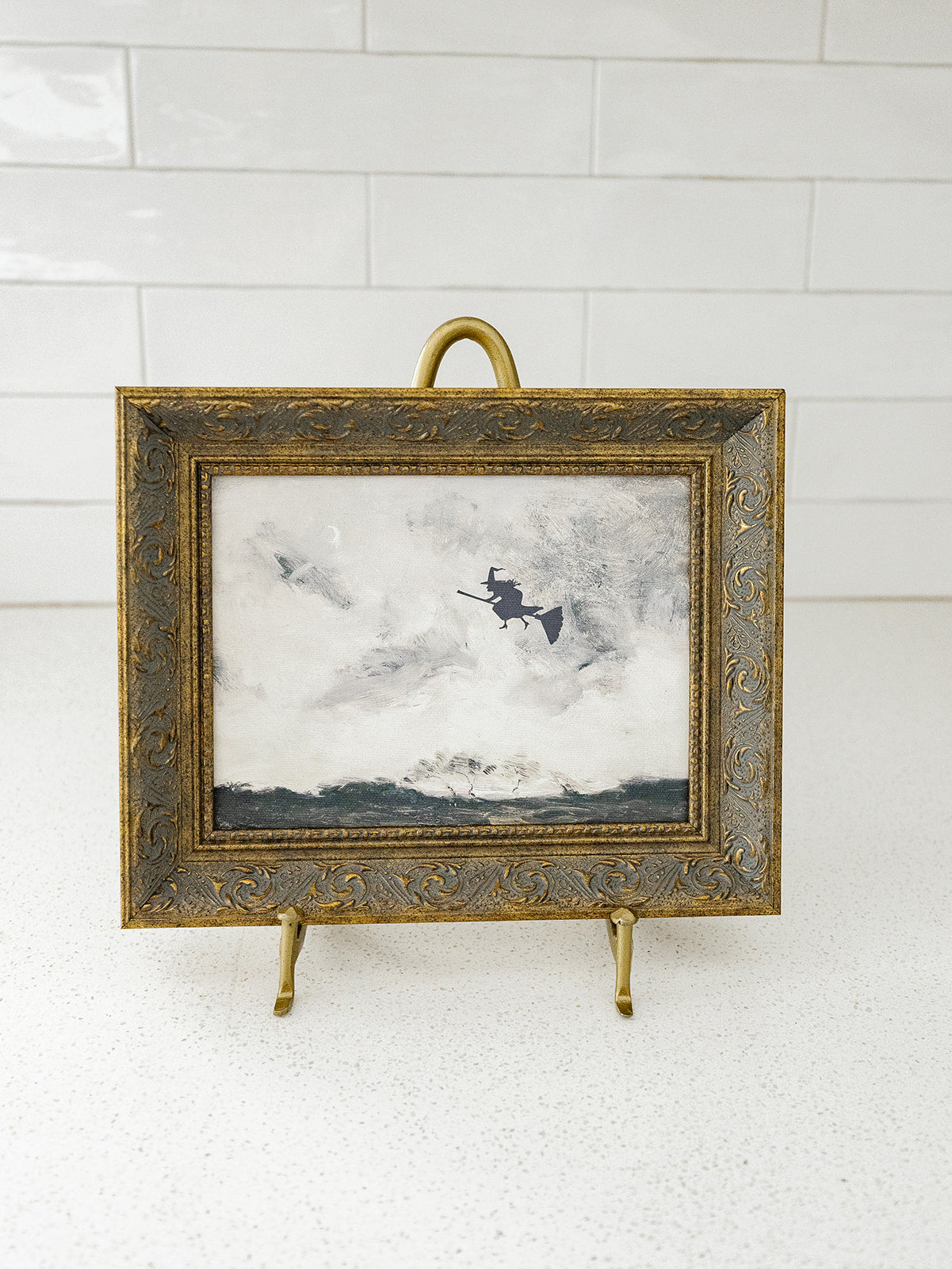 Elevate your Halloween decor with this enchanting Witch Flying Framed Art. Perfect for a whimsical festive touch!